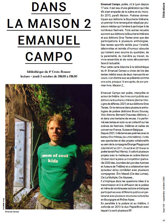 Je n’ai pas de livre monument de chevet de la mort qui tue. Je relis le plus souvent les recueils des copains, et ceux de Dan Fante ou d’Aimé Césaire….